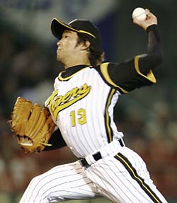 2007年5月31日(木) 対西武 2回戦 甲子園 阪神6×3西武連勝だ~4 所載はこちらをクリック 阪神・中村泰が“スクランブル発進”で好投!4回から登板し2勝目を挙げた阪神・中村泰=甲子園 (交流戦、阪神6-3西武、2回戦、阪神2勝、31日、甲子園)阪神・ボーグルソンのアクシデントで急きょリリーフした中村泰が好投した。 2点ビハインドの四回から登板。「いつでもいけるようにしていた。2点差なので流れは来ると思っていた」と中村泰。ここを3人で片付けると、直後に味方が逆転。攻撃にリズムを呼び込んだ。突然、やってきたチャンスでアピールし、岡田監督はボーグルソンに代わる先発陣入りを明言した。レオに強いトラ! 阪神連夜の逆転勝ちで交流戦初の2連勝!4回阪神無死、林が右越えに本塁打を放つ=甲子園4回阪神1死一、二塁、鳥谷が右越えに逆転3ランホーマーを放つ=甲子園 (交流戦、阪神6-3西武、2回戦、阪神2勝、31日、甲子園)2点を追う四回。阪神は林威助、鳥谷の2本塁打で逆転した。「大きかった」と岡田監督も喜ぶ一発攻勢だった。 まずは先頭の林威助。甘い直球を見逃さず、一直線で右翼席へと運んだ。いつもの浜風と逆の、追い風が吹く中での8号ソロに「いい風が吹いていた。いい結果が出てうれしい」と顔をほころばせた。 今岡、シーツと出塁して一死一、二塁。鳥谷は外寄りのスライダーを引っ張り、右越えに逆転3ランを放った。こちらは不調で打順を7番に落とした中での一発。「いい時も悪い時もある。最終的にいい形で終われれば」と表情を崩すことはなかった。 相手は左腕のグラマン。ソフトバンクの杉内や中日の山本昌など、これまでは好機で左打者が封じられてきた。広沢打撃コーチは「左が打てば、右もつながる。それが四回に出た。きょうはよく打ってくれたね」と苦手とされる左攻略に満足顔だ。 今季初の2試合連続逆転勝ちに、交流戦初の2連勝。鳥谷は「これから遠征が続くけど、全部勝って(甲子園に)帰ってくる」と力強かった。◆藤川(15セーブ目)「四球もあったし、もっとビシッとしたかった」◆金本(七回の守備で二塁走者を本塁で刺し、直後に味方が2得点)「返球は半端だった。あれで流れを変えたというんかね」