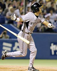 ツバメ叩いて竜仕留める!“初戦男”桜井で夏ロード奪首締め!東京駅に到着した桜井、今回は無事?に移動のバスにたどり着く 長期ロード最終章は、“初戦男”に任せろ!! 阪神・桜井広大外野手(24)が20日、21日からのヤクルト3連戦(神宮)に向けて東上。一戦ごとに頼もしさを増す若虎は、ここまで7カード連続で初戦に打点を挙げている。ロード勝ち越し&奪首ウイークのカギは、6番定着の背番号51が握っている。◇ 淡いグレーのストライプスーツに身を包んだ姿にいまや、勝負師の風格が漂う。8月、2度目の東上。桜井の眼光は鋭さを増していた。夏恒例の長期ロードを締めくくる、奪首のかかる6連戦。キーマンはこの男だ。 7月反攻、ロード快進撃と虎の猛追の中心にいたのが、24歳の若武者だった。後半戦から『6番・右翼』に定着。それが欠かせない存在になった理由は、カード初戦の勝負強さにもある。レギュラー奪取後、7月27日横浜戦(横浜)から7カード連続で初戦に打点を稼いでいる。打率.400(25打数10安打)、9打点。さらに京セラドームに戻った14日中日戦、17日広島戦では、持ち前のパンチ力が蘇り、勝負を決める2ランをかっ飛ばした。 「そんなに打ってるとは知りませんでした。初めを大事にという意識ではないんですけどね」 本人も改めて驚くデータだが、先手必勝が勝負の世界の常。チームもこの間、3カード連続で白星発進。その影響力は絶大だ。単に打つだけでなく、どこで打つか。不動の6番打者として担う役割は今後も大きい。 長期ロード15戦で9打点は、1位のシーツ(10打点)に次ぎ、主砲の金本、5番・林と並ぶ2位だ。クリーンアップが沈黙しても、その後ろに恐怖の6番が睨みをきかす。そんな打線の厚みに相手投手は震え上がり、中軸との勝負を安易に回避できない状況なのだ。打棒復調のシーツ、76打点を挙げる金本、打率3割をキープする林。桜井の勝負強さが、相乗効果を生んでいる。 19日までの京セラドームでの6連戦では2度の完封負けを喫したが、骨格が固まった打線に岡田監督も手応え。「(首位獲りは)まだや。残り30(試合)を切ってからが勝負。(それまで)このくらいの差でいっておけばな」と先を見据え、チーム便よりも40分早い新幹線で東京へと乗り込んだ。指揮官が思い描く9月勝負は、混戦状態が前提。そのためにも、この1週間が重要になる。 むろん、命運を握るバットマンも任務は承知のうえだ。夕刻に都内の宿舎に入り、戦いに備えて静養に努めた。 「自分ができることをきっちりしたい」 気負いはないが、気合いは十分だ。最下位のヤクルトを一気に飲み干し、首位を走る竜のしっぽを敵地でつかむ。まずは21日の第1戦、東都の杜に季節外れの猛虎桜が咲き乱れる。■一軍になじんだ 桜井は2週間前の東京遠征でハプニングに見舞われた。東京駅の出口を間違え、宿舎に向かうバスに乗り遅れた。 「僕が待たせるのは悪いんで…」。馬場サブマネジャーにミスを伝えると、タクシーでバスを追った。今回は先頭で移動のバスへと向かった。「前はかなり歩きましたからね」と笑った。できる男は同じ過ちは繰り返さない!? すっかり一軍にもなじんだようだ。シーツ残留へ6番勝負!ロード終了後、運命の編成会議!後半戦に入って、打棒復調が顕著なシーツ。残留を勝ち取るため、この6連戦の結果は特に重要だ 阪神のアンディー・シーツ内野手(35)が20日、21日からのヤクルト3連戦(神宮)に備えて東上。今季で1年契約が切れるが、前半戦で極度の不振に陥ったことから球団側の処遇は微妙だ。新外国人の調査のため、渡米中の渉外担当者の帰国を待って今月末には拡大編成会議が開かれる。優勝のかかった週末の中日3連戦までの6試合の成績が、契約問題を大きく左右しそうだ。◇ チームとともに猛追をかけるS砲が、『残留への6番勝負』に打って出る。絶不振の前半戦はチーム内外で限界説も聞こえてきたが、球宴後の巻き返しで扱いは分からなくなった。長期ロードの残り6試合で、シーツの運命が決まりそうだ。 来日5年目、阪神では3年目のシーツはこの日、東上。21日からのヤクルト3連戦(神宮)に備えた。球団はロード終了後の今月末に拡大編成会議を行う予定で、それに合わせて現在渡米している三宅徹渉外担当も帰国する。ポジション別の新外国人候補のリストも作成され、FA、ドラフト戦略などを含めて協議がなされる。 「あの守備はもちろんだが、打撃も本来のものを取り戻しつつある。チームの戦力のバランスも考えて(評価が)変わっていることは確かだ」。ある球団首脳もシーツの再評価に言及している。前半戦71試合は打率.231、6本塁打、22打点と大きく期待を裏切った。推定2億9000万円と年俸も高額で、残留が危ぶまれていた。 しかし球宴後24試合は打率.302、3本塁打、16打点と復調ぶりが顕著。守備でも今岡に代わってサードに入り、好守を連発。さらにチーム状況も残留への追い風になっている。 打撃不振から二軍降格中の今岡は、来季も未知数の部分が大きい。現在、一塁の