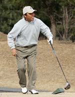 笑顔でゴルフの岡田監督。07年オーダーを思い浮かべてニンマリ?