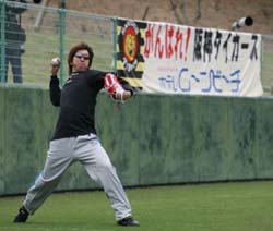 来日から一夜明けたジャンはさっそく、甲子園に乗り込んで肩慣らし。変化球も試投した