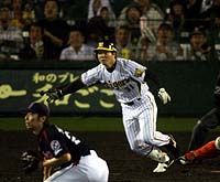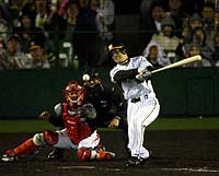 九回、一死満塁で林はヤクルト・高津から右前に同点タイムリー