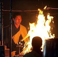 けさを着て、座禅を組み、3メートルの高さまで立ち上る炎に顔を約50センチまで近づける。摂氏400度超といわれる業火には、新井もかつてやけどを負ったほど。逃げたしたくても、お互いの監視の目が光る。苦しい顔も、弱音も吐けない。闘志のマグマも燃え上がり、これまでにない壮絶な行になることは間違いない。