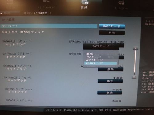 メモリ: Winchip WVD31333C9U-2GX2 (DDR3 PC3-10600 2GBx2)、CFD W3U1333Q-2G (DDR3 PC3-10600 2GBx2)