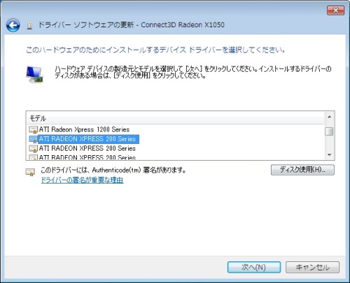 C:\ATI\Support\10-02_legacy_vista32-64_dd_ccc\Packages\Drivers\Display\LH_INF\CL_95951.infを指定