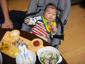 次男が100日を迎えました♪12月14日にお食い初めをささやかに行いました(*^_^*)長男のときを思い出しながらいただきものの食器たちを使わせていただいてこんな感じ♪梅干しをちょんちょん♪一生食べることに不自由しませんように(●^o^●)と。いっぱい食べておおきくな~れ♪ といいたいところですが・・・先日の3カ月健診では体重7655グラム。身長63.3センチ。長男の同じ時期と比べて2キロも大きい・・・。心配しなくても大きくなりそう(*^^)v元気いっぱい育ってね。