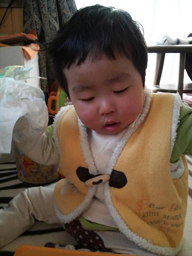 今朝は、幼稚園の行事だったんで少し遅めの出発。時間があったんで今朝のヒロシですオムツの出し入れが楽しいらしいです。部屋の中はいつも散らかり放題・・・(ー”ー;)でも、大好きよ