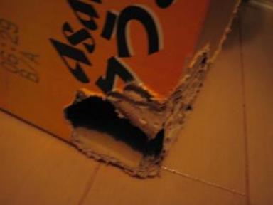 お久しぶりです、メープルチャームです明日七つ目を発表する・・と書いていたのに、更新しなくてすいませんそれではお待ちかね?の我が家のハムの七不思議、七つ目です!7、ましゅは必ず水のみボトルの下でちっこをするボトルをどこに変えてもその下でするんです!こだわり・・なんでしょうか?お友達ブログのみやっちさんのところで、かわ怖い話をしていました我が家も怖い話がありますよ~ある日、ダンボールを見てみると・・かじられた穴がもしや、幽霊が!!?と思ったら・・・動画・犯人は・・!?ハムの歯、おそるべしですこのぐらい丈夫な歯の持ち主にかじられたら・・と思うと、怖いですあまくみちゃいけないでしゅよ大丈夫でちよ♪飼い主しゃんは噛みましぇんから♪♪びっくりさせないように気をつけてね♪飼い主しゃんポチッと励みになります*^^* →