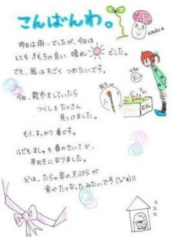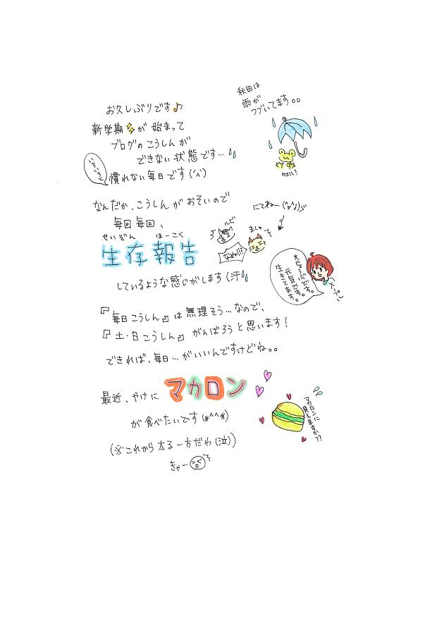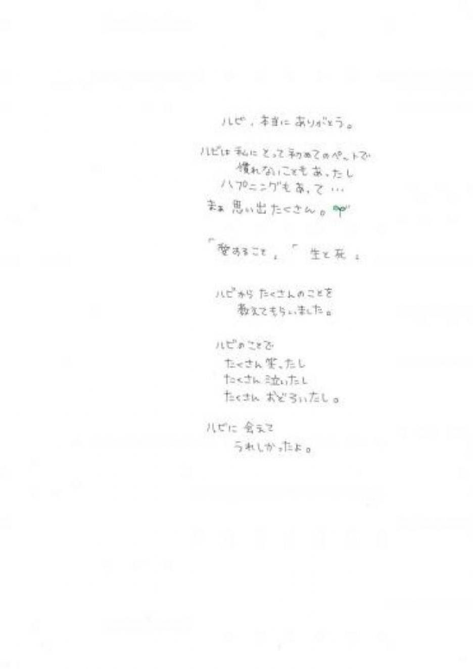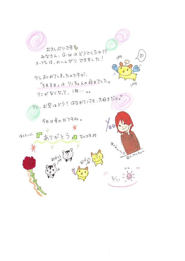 せ、生存報告なんて失礼でちよ!ワタシ、イキテマース。ゲンキデース。そうそう。今日から、バカ飼い主さんが手書きでブログ更新してるでち。読みづらかったら、教えて欲しいでち。お仕置きでちからえ?さっそく読めないって?お仕置きだべ~~ルビ、そんなこと言ってるとうまうまが少なくなるよっ!・・はい。そうです。先ほどルビが言っていたように、手書きで更新しています。字は汚いし、意味不明な文にへたくそな絵・・・なので、読みにくかったら教えてくださいね。これからもよろしくお願いします★応援ポチッと励みになってます(^^)