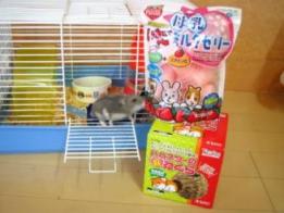 ルビに「おめでとう」と言ってくださった皆様、ありがとうございますルビ、すごく喜んでいますよ♪家族からルビにプレゼント苺みるくゼリー、とっても甘くていい匂いがします*^^*苺さんの味がするでち~それからもう一つ。わらのお家☆寝るのに使うんじゃなくって・・ルビのケージの入り口はいつも開けといて、いつでも遊びにいける状態にしてあるんです。あ、夜はちゃんとケージに入れていますよ~。ルビには別荘が三つあって(お散歩コースに)そのうちの一つによく寝ています^^お散歩コースは危なくないし、いつも決まった場所しか行かないので安心安全!そのお散歩コースにわらのお家を置いています*・v・*プレゼント、嬉しいでち~ぼくからのプレゼントは、何をあげればいいんでしょう?用意する時間はないから、すぐできるもの・・。チュー?? それだけはやめてください。応援ポチッと励みになります♪