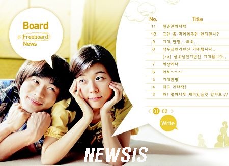 【ソウル=ニューシース】来る 22日 2006年春を愉快に染める最強カップルグァン・サンウ-キム・ハヌルの '青春マンガ'(製作ポップコーンフィルム監督離韓)がホームページ(www.awoongdawoong.co.kr)をオープンする。七色回り虹色で派手な春の雰囲気をぷんぷんと漂っている '青春マンガ' ホームページは見る楽しみだけでなく訪問者たちが直接参加することができる多様なコーナーたちがマリョンドエあって一階もうホームページを尋ねる楽しさを加えてくれる。4種マンガジャンル別で分けられているホームページはマルプングでは模様の可愛い青春マンガロゴをクリックすればそれぞれのセクションに移動することができる。既存の一般的なホームページたち構成とは違い下上で画面が動きながらセクションあまり個性ある音楽とグァン・サンウ-キム・ハヌルカップルだけではなく出演陣たちの生きている表情とエピソードたちが盛られていて面白いオンラインマンガを見ること思いきり訪問者たちを楽しくしてくれる。特に '明朗マンガ便では 13年知己 '指環(グァン・サンウ)'と 'ひめにら(キム・ハヌル)'がアウングダウングする姿から '青春マンガ'のハイライトであるグァン・サンウ-キム・ハヌルがデュエットと歌った '日課こちらの仕事' 歌と可愛い振付師加味されたカラオケ神さままでこっそりうかがうことができる。ポップコーンフィルム提供[ 記事提供] ニューシース | ニューシース記事表示↑は翻訳文です。原文はここです。青春マンガのHPはもう出来ていました。ここです。ずいぶん楽しそうなHPです!!私も見てて来ちゃいましたよ~~~~~fufufuあぁ 楽しかった!!SCREEN INTERVIEW 3月号