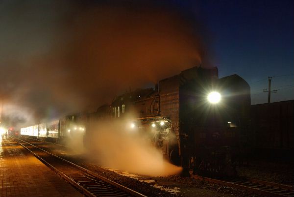 まだ明けやらぬ熱水の龍泉賓館を出発して、まずは林西の駅へ向かいました。ここでどれぐらいの時間、停車するかどうかで、朝の西行き列車の撮影条件が決まります。できれば長く停車して、夜が明けてから宇宙地へ向かってほしいのですが。。。
