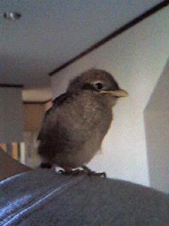 -追伸 もずきち- (myブログもずきち日記参照)あれから、もずきち(百舌鳥)は立派に(?)成長して、わが家の窓から見える電線にときおり止まって、キチキチキチ って甲高い声で鳴いています。鳥カゴから巣立った後(5月9日)、電線の上でしばらくはまだ親鳥からエサをもらっていました。まだ、親離れできないのか・・って内心わらっていたけれど、どこかへ飛んでいって、姿が見えませんでした。そのうち、南方の越冬地からツバメが帰って来て、お隣の家の軒下に巣作りを始め卵を産み、そのヒナもかえって、親鳥はエサ探しにビュービュー飛び回っているところです。でも、もずきちたち親子も飛んできて、縄張り争いが始まっています。今朝は、もずきちがツバメに追いかけられていました! ・・イスラエルとパレスチナか。ツバメの飛ぶ速度は、時速60Kくらいなので、完全にもずきちが不利。結局はもずきちが追い払われてしまったけれど、気にせずに戻ってきて、また電線に止まっていました。仲良く共存できないものなのか・・。とにかく、もずきち親子、頑張れ! 4月30日の写真
