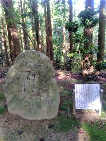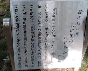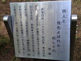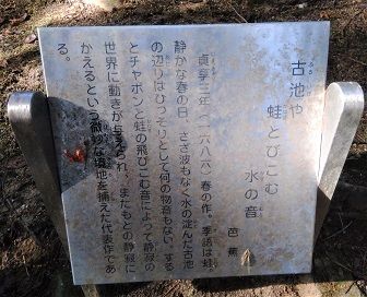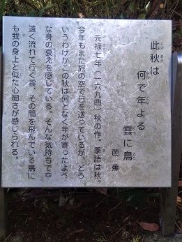 しばらく上ると見晴台のある広場に出ますが、土が流れたのか大木の根が突出して足元が危なかったです。続く遊歩道の左右には芭蕉の句碑がレイアウトしてあり趣がありました。