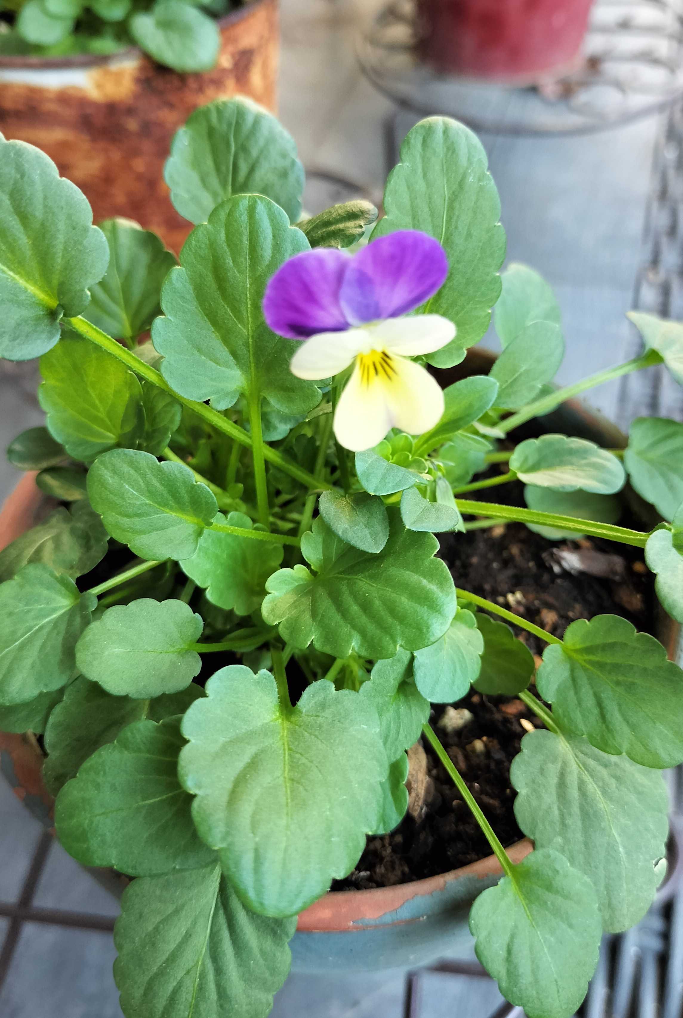 ミニプランターに植えていたビオラも開花
