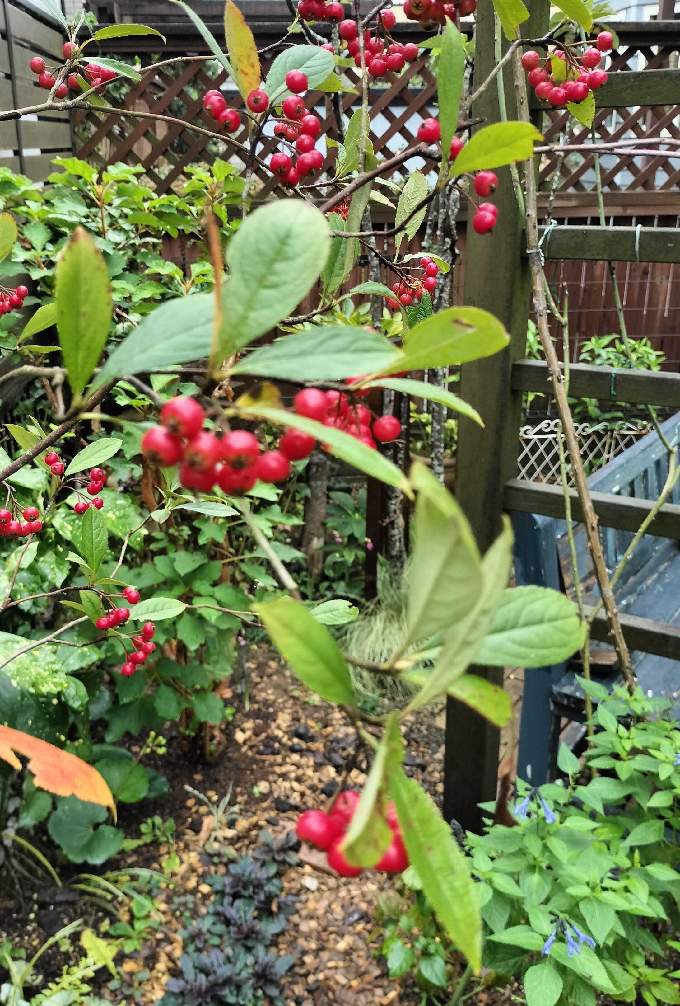 今の季節は花だけではなく 実がなったり実が色付いたりする 楽しみがあります 日に日に赤く色付いてきているアロニア 玄関の小径に植えているアロニア 庭には2本のアロニアを植えています 真っ赤な実がかわいいです これから葉も紅葉してきます 同じアロニアでも コチラは黒い実のアロニア・チョコベリー果樹の苗/アロニア(チョコベリー): バイキング3.5号ポット 今年はチョコベリーの黒い実が たくさんなりました 初めてこのチョコベリーの実を収穫し 今年はアロニアのジャムを作りました その際少し残していた実が 今も残っています コチラにも黒い実がなっています コチラの黒い実は白ヤマブキの実です山吹 苗 白山吹(シロヤマブキ)白ヤマブキ 5寸鉢植え 苗木 やまぶき 黒い実が冬も残るので 冬枯れの庭のアクセントになります コチラはツリバナの実 赤く色付いた実が弾け出しました この赤い実はやがて真っ黒になっていきます あんなに暑かった日が嘘のように 気温の低い日が続いています 赤い実 黒い実 弾ける実を 楽しめる季節でうれしいですが 急な気温降下には少し焦ります 種まきっ子のビオラを鉢植えにする作業も 続けています 今回は3つの吊り鉢に 種まきっ子ビオラを植え込みます ビオラはひと苗のように見えますが 3つの苗をギュッとまとめて植えています 周りにはワイヤープランツと こぼれ種育ちのイオノプシジウムを 一緒に植えました コチラの吊り鉢には 種まきっ子ビオラ3苗とイオノプシジウム コチラの吊り鉢には 種まきっ子ビオラ3苗とイオノプシジウム そしてクローバーを植え込みました コチラは少し前に植え込んだものです 10月の開花は望めなさそうです これからはよく日に当てたいと 吊り鉢に植え込んで 出来るだけ日当たりを確保しようと しています この先雨の日や曇りがちな日が多く 日にたっぷり当てることは なかなか難しそうですが 天気のよい日には 出来るだけ日に当てるような場所に 置くよう心掛けたいです