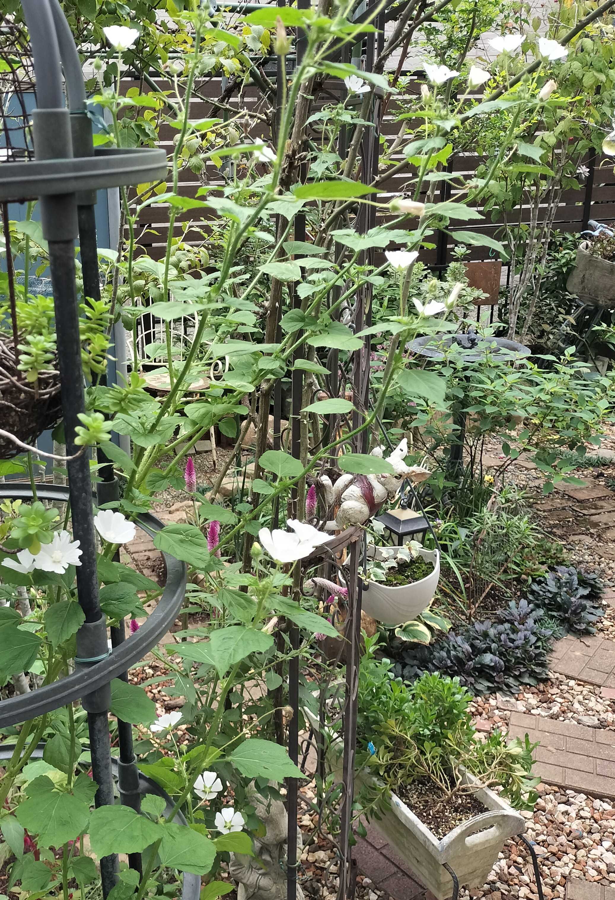 アノダシルバーカップは とても花期が長く 毎年取り入れたい花だなと思います もう何か月咲き続けているでしょう アノダシルバーカップは カップ型の白い花がかわいいです アノダシルバーカップは アオイ科アノダ属の非耐寒性1年草 暑さに強いので 近年の猛暑にも耐える花です 来シーズンの植栽計画候補に ぜひ取り入れてほしい花です 暑さに強いだけでなく花期が長いこと 白い花なのでさわやかな印象で合わせやすい 種まきから60日ほどで開花するので 育てるのが簡単なのも おすすめポイントです うちの庭では今2本アノダシルバーカップを 残していますが 1本は2メートル位の高さになり 今もたくさんの花を咲かせています 切り戻しにも強いので 育てる場所により高さを調節出来ます 今オベリスクの中に入り込み咲いていますが こんな野性的な咲き方もするのだと 楽しんでます ほぼ放任しているとこんな状態になり たくさんの花を今も咲かせます アノダシルバーカップは 種から簡単に育つので タネ蒔きで育てるのがオススメです 花後にこんな5角形の中に種が出来ます ただ気温が15度を割ると 中に種が出来ないようなので 急に気温が下がっている今 種が出来るか少し心配しています さてビオラの地植え植え込みもやっています 今年の種まきっ子ビオラは 発芽も生育もよかったので苗がたくさん 植えても植えてもまだまだあります 立ち上げ花壇の中に植え込みました うちの庭では立ち上げ花壇でさえも 霜柱が立ちます マルチングもしたほうがよいかもしれません 少し前に植え込みをしていたビオラは しっかり根付いてきているようです 開花の方は開花1号のビオラのあと なかなか進みません 開花1号のビオラは今こんな状態で 他のつぼみも出来てきました 今のところ二つは確認出来てます 他のビオラの鉢植えでも つぼみが見えてきました 年内に少しは開花して欲しいと 願います 「シナノホッペ」というりんごに出会いました シナノスイートというりんごが好きですが 「シナノホッペ」というりんごは はじめてで 真っ赤でキレイなりんごです 蜜が入りやすい品種だそうで 甘酸っぱくてとても美味しいりんごでした