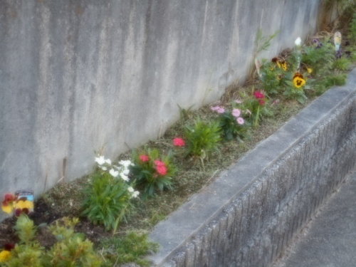 慣らし運転も兼ねて庭遊び(ちょっと痛みが残る右膝皿周辺)散歩もなんだからと、ホームセンターへ自転車で出向いて「花苗」を買い足してきた。(安っすい扱いやすい苗)リハビリがわりに・・・ぎりぎり咲いてる花・・・生え揃ったらも~ぅ少し綺麗にナルカ。
