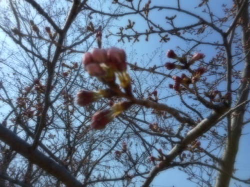 春の陽射しに誘われるように表に出ては見たものの空気はまだまだ冷たさを含んでいました。(さくらの状況でも写そうか?)なんて、デジカメを持ち出していたので、いつものように何のも工夫も観られない撮影でっす。順適当に・・・裏庭のさくらな程度です。こちらの『桜情報』では「明日にも満開!」って、ラジオで語ってました