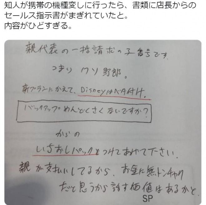「スマホにしょう!」なんて言われてから、何となく調べてみたらこんなのが見つかったりしてジジイは「Oyo-yo(@o@ !!」だよね。携帯ショップってこんなもんだと思いますよ。店員さんの態度とか観察してたらわかりますよね。こんなコメントもあったりすると(やっぱりな~ぁ!?)なんて思ってしまう。この指示書の大本はド○モで謝りのコメントがあったりして・・・郵政の何たらと変りないね~ぇそしたら・・・aUが~ぁ・・・メモリーカードのmicroSDを高額でお年寄りに販売していると物議を醸しています。こんなの見せられたら・・・オチオチのってられないね。