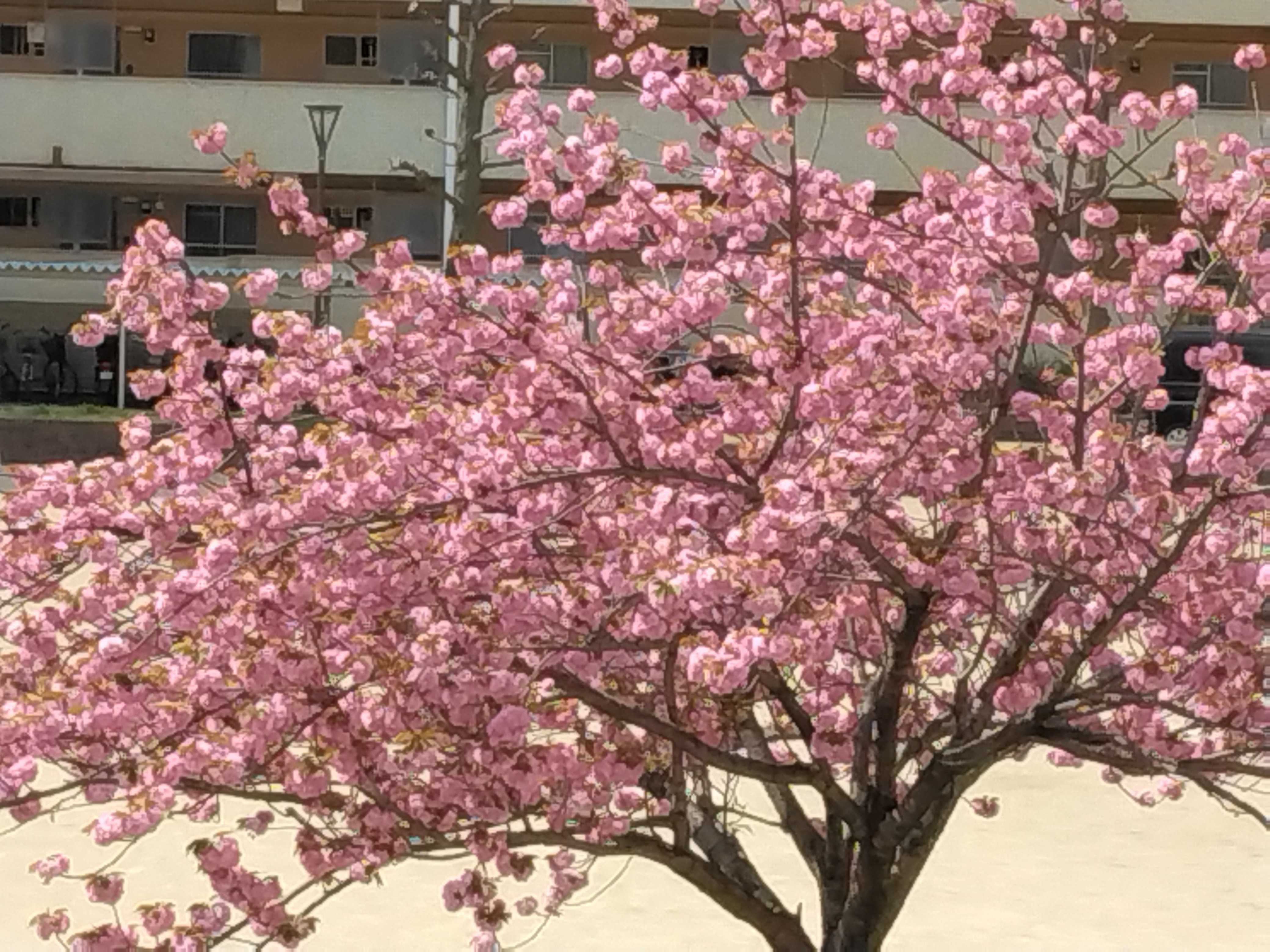 膀胱がん治療(抗がん剤治療)で入院していた弟からがありまして、3月14日入院。16日より「抗がん剤治療」開始。(1回目の治療終わって一時退院) ※ 心配していた副作用は一切なかったようです。昨日(3日)の検査で白血球の数値が悪くて退院がやばかったようですが、、午前と午後の検査で数値が正常値で、退院の運びになったそうです)第二回目の「抗がん剤治療」は4月11日入院~ 向かいの公園に咲いていた「八重桜」、貼っておきましょう。