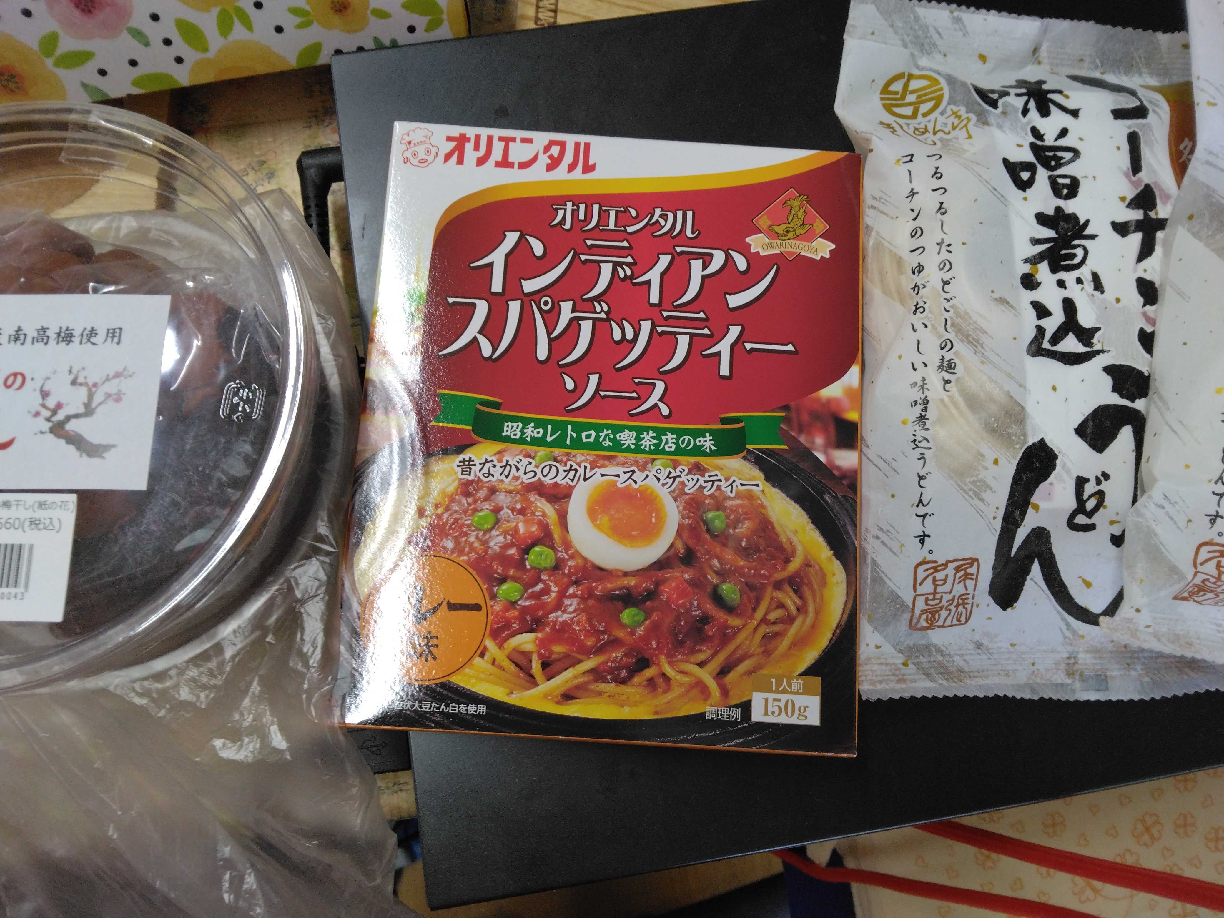 月一予約の美容院へ出かけて行った上さんからのメールに送ってきた写真。「梅干し」他・・・栄バスターミナル(オアシス21)にある愛知県アンテナショップ ピピッと!あいちここで販売している「梅干し」・・・原料「南高梅・塩・紫蘇」のみ・・・新物。(近所のスパーで売っている「梅干し」は、例えばかつお梅(塩分約10%)【原料・・・ 梅、しそ、かつお削りぶし、漬け原材料〔食塩、砂糖、果糖ぶどう糖液糖、醸造酢、発酵調味料、こんぶエキス〕/酒精、調味料(アミノ酸等)、甘味料(スクラロース)、ビタミンB1 】はちみつ梅超ライト(塩分約3%)【原料・・・梅、漬け原材料[果糖ぶどう糖液糖、醸造酢、砂糖、はちみつ、食塩、酵母エキス、こんぶエキス、発酵調味料〕/調味料(アミノ酸等)、酒精、甘味料(スクラロース)、ビタミンB1】せめて梅干しくらい、混ぜ物たんとでないものをってことで。「購入」新物がでてましたとさ。序に映っている【オリエンタルのインディアンソースと味噌煮込みうどん」は、上さんの好み。は、帰って来てからの「お茶のあて」・・・だと。