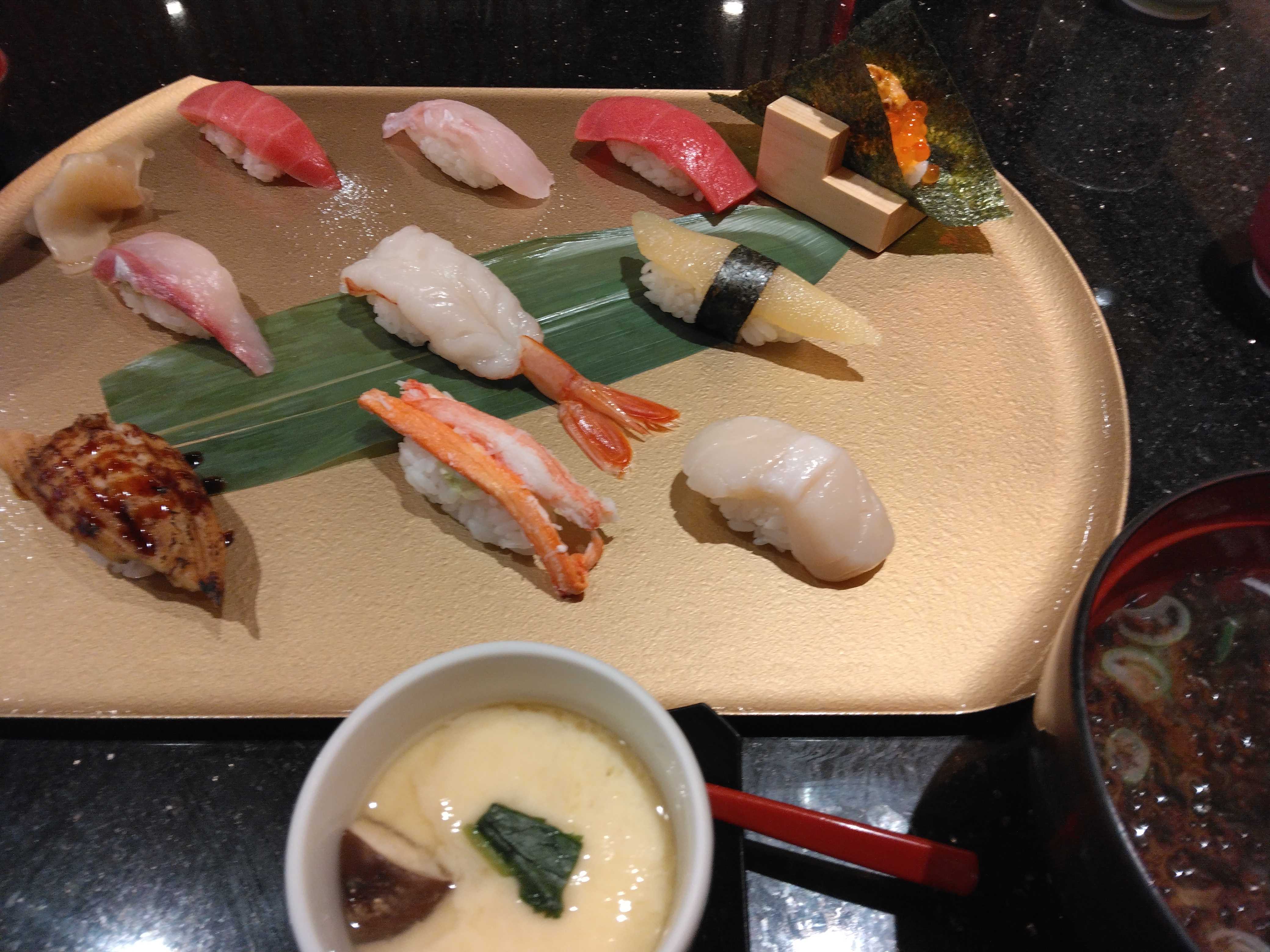 名古屋駅前店に初めて行ったとき、上さんにを、取ってもらいジジイはアラカルトにして(借り物)分け合って食べた。こんときはノンアルコールビルをそれぞれが注文もした。(努々、孫と一緒の時は・・・「行けません!行きません!!」という値段の店かも?)今回行った「バンテリンドーム店」のメニューは、「駅前店」とは違っていて、今回ジジイが(借り物)「加賀百万石握りセット」を注文し、上さんがアラカルトで頼み分け合って食べることに。今回、「汁物」は上さんが「のり汁」ジジイは「のどぐろの粗汁」最初に頼むはずだった、「加賀百万石握りセット」がメニューからなくなっており結局ジジイもアラカルトの注文。それぞれの注文を分け合って食べることになってしまいました。 この写真、上さんが注文した一部。上さんが言うには「のり汁」駅前店の方が美味しかったと。そ~ぅ、ジジイが頼んだ「あら汁」ですが、炙り足らなかったのか、一寸生臭かったような?ぅ~~~んでも・・・それなりに「満足してました」とさ。