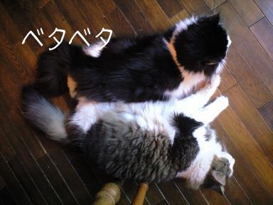 今日も暑ーい何処に行っても、誰に会っても、この所出るセリフは皆同じ・・・。”暑いねー!”で、始まり、それから3分はお互いどれだけ暑いかの話題・・・・・。もう、分かり切ってるし、もう少し洒落た話題で始まりたいものなんだけれど・・・。ヤッパリ、言ってしまう!”暑い!”て、ところで、ウチの猫ズは暑くても寒くてもあんまり関係なく、昼間は昼寝と、決まっています。この暑いのに(また言ってしまった。)よりにもよって、ベタベタと、くっついて・・・・。まあ、親子だし、仲良ししたいんだろうけど・・・。見ている方が暑くなる。(またまた言ってしまっう)知っていますか?今年の夏の平均気温は去年よりも2度も高いって、それって、大問題ですね。日本は、年々暑くなり熱帯地域のようですね。この夏も、クーラーの電気代が怖いこの頃ですニャン!ブログの人気投票!お願い!押してね。人気投票参加中です。お手数ですが、二ヶ所ポチとおねがいします!