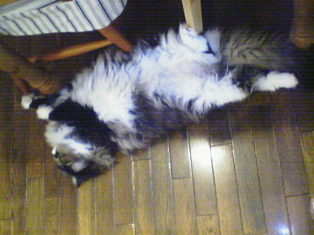 みてください! この、素晴らしくピーンと伸びた足。いくら、お母さんがボクのこと”ぼけぼけ”って言っても、この足見てよ!指先(?)までシャキッっと伸びた後ろ足。。。。尊敬しない?さすが!とか、思わない?うーん、ムサシくん。やっぱただ者じゃない!いつもダラダラ、ボケボケ、してるように見せておいて、実はどっか筋が通ってルのね。。。(イヤ、全然ちがうと思うけど。。)まだまだ、君には見えない秘密の技があるかも?お母さんは楽しみスター性がアルって言うか、計算されていない凄さって言うか、まあ、簡単に言うとやっぱり天然ボケだわw.ブログの人気投票!お願い!押してね。↑人気のランキング参加中です。二ヶ所ポチッとお願いします!