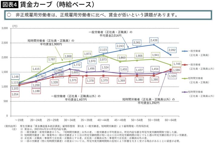 「低収入女性+非正規の男性」で急速に少子化が進む日本…社会学者「今すぐ打てる対策はこれひとつしかない」■「女性の貧困」は急速な少子化をもたらした要因のひとつ労働者階級の夫をもつ専業主婦とパート主婦は夫との離死別によって、貧困層の典型のひとつである「アンダークラス」に陥るリスクが極めて高いとお伝えしました。 私はこれを日本の存続の危機に直結する問題だと考えています。女性の貧困は、男女格差や女性差別をなくして困っている女性を救おうといった文脈で語られることが多いのですが、それだけではなく日本社会を救うために解決すべきなのです。 日本の状況はそれほどまでに切迫しています。ロストジェネレーションと言われる現在40代~50代前半の人は、生まれた時期が第2次ベビーブームとも重なっていることから、人数もかなり多い。この世代には社会に出た当初から非正規雇用・低賃金で働き続けている人が少なからずいて、中でも単身女性は「ロスジェネ女性」と呼ばれ、その貧困リスクが社会問題化しています。 ロスジェネ世代の非正規雇用者の中には、収入が低く雇用が不安定であるがゆえにそもそも結婚できなかった人もいれば、結婚はしても同じ理由から、あるいは仕事と子育てを両立できないからと子どもを持たなかった人もいます。■非正規のロスジェネ、夫と離死別した女性がアンダークラスへ この世代の男女が正規雇用に移行でき、かつ仕事と子育てを無理なく両立できる環境がつくられていれば、今の日本にはもっと多くの子どもが生まれていたのではないかと思います。少子化がこれほどまで加速することもなかったでしょう。 また、もともとは正規雇用のカップルでも、平成の時代になっても高度経済成長期から変らず社会の仕組みが「男は仕事、女は家庭」という性別役割分業を前提につくられていたため、女性の多くは結婚や出産を機に退職して専業主婦となりました。その後、子育てがひと段落してから再び働き始めた人も多いのですが、大半は低賃金の非正規雇用者、すなわちパート主婦になっています。 専業主婦もパート主婦も、夫と離死別すればたちまちロスジェネ女性と同じアンダークラスに転落しかねません。そう遠くない将来、この決して少なくない数の人たちが同時期に高齢者になります。年老いて働けなくなった後、多くの人が生活保護を受給するようになるだろうことは想像に難くありません。そうなれば日本の財政は生活保護費で破綻します。男性の非正規労働者化の進行です。以前から女性の非正規は多かったものの、男性にまで広がるとは思いもしませんでした。そして非正規で経済力の低い男性が増えるにつれ、結婚できない男性も増え始めたのです。 男性が正規雇用であれば、ある程度の収入があるため非正規の女性と結婚しても生活していけるでしょう。しかし、両方が非正規の場合はかなり厳しくなります。結果として、経済力がないがゆえに結婚相手として選ばれない男性が増えることになりました。 また、経済的に不安定な男性が増えたことから、近年では「結婚相手に専業主婦になってほしい」と考える男性は全体の10%以下になっています。以前は40%近くいたのに、今では男性も女性にある程度の収入を求めるようになっているのです。 非正規であるがゆえに結婚できない男性が増えれば、そのぶん結婚できない女性も増えます。さらには男性でも女性でも、非正規で収入が少ない人は結婚相手として選ばれにくくなっている。このままでは少子化はますます加速し、日本は存続の危機に陥るでしょう。今すぐできる打ち手は割と簡単で、最低賃金を大幅に引き上げればいいのです。先般、最低賃金が引き上げられ、全国平均の時給が1055円となりましたが、私はさらなる引き上げが必要だと思っています。 例えば最低賃金を1500円にすれば、年間1600時間働いたとすると年収は240万円ほど。フリーターやパートを含む非正規雇用者同士で結婚しても世帯年収は480万円ほどとなります。これは専業主婦のいる労働者階級世帯の平均世帯年収とほとんど変わりません。■最低賃金を1500円にすれば非正規の夫婦でも世帯年収480万円に 共働きが難しい出産・育児期間に世帯年収が減るという制約はありますが、少なくとも「非正規だから結婚も子どもも無理」という問題は解消に向かうのではないかと思います。効果もすぐに出やすいので、その意味では結婚や子育てをする人を増やすための即効薬と言えるでしょう。 ただ、企業からすれば単に最低賃金を引き上げるだけではメリットがありません。そのため、上がった賃金に見合うだけの仕事をしてもらおうと、非正規雇用者の教育や育成に力を入れ始めるかもしれません。 こうした取り組みが進めば、企業の考え方が「非正規でもしっかり仕事をしているのだから正社員と区別する必要はない」という方向に変わっていくかもしれない。それが最も望ましい道筋だと思いま