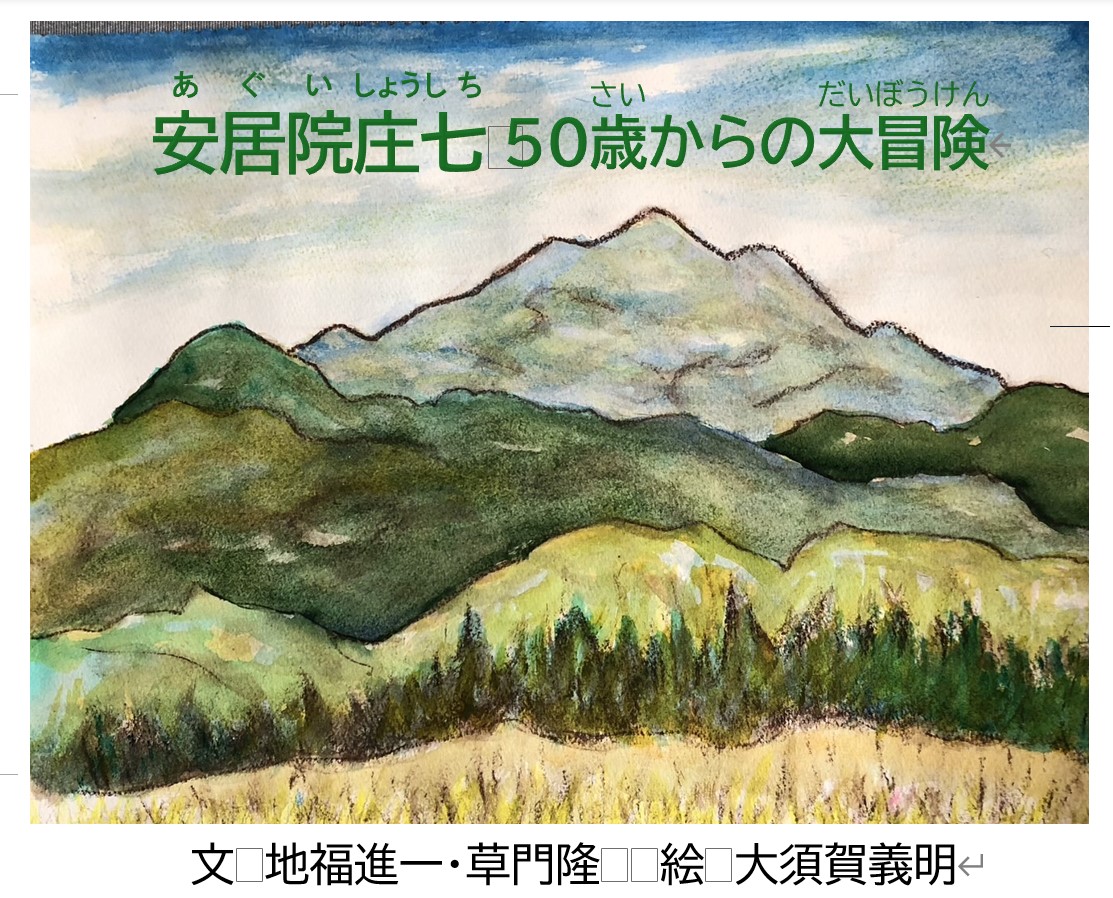 12月30日にクラウドファンディングが終了した。題名を『安居院庄七と鷲山恭平』に変更し、まえがきもポイント数を下げ短くし、4枚から2枚にした。表題も「プロローグ」から「まえがき」に変更した。ただし、中扉は当面「安居院庄七 50歳からの大冒険」のままにする。まえがき『現代語訳 安居院義道』*は令和6年3月に出版し安居院先生の出生地・神奈川県秦野市、足柄上郡などや「遠州報徳」を普及した静岡県内の公共図書館などに寄贈しました。また秦野市、足柄上郡や静岡県森町、掛川市、袋井市、磐田市の小・中学校にも寄贈しました。ところが「小学生には難しすぎる」という声もあり、今回「絵と地図で楽しめる」「子どもでも読める」をコンセプトに『安居院庄七と鷲山恭平』を出版します。「秦野市史研究」第25号に故・井上静男先生が「遠州と故郷の安居院庄七像」を寄稿されています。かつて遠州では安居院先生が次のように尊敬されていたのです。「昭和24年、夏休みを利用し、「下石田報徳社」ただそれだけを頼りに浜松駅に降り立った。駅員に下石田の順路を聞き、戦災の跡の生々しい浜松街中を通り下石田に向かった。 村で「報徳を広めた家」と聞いただけで、神谷与平治子孫方に案内してくれた。 夏のこととて家族の方は広い庭で畑仕事の整理をしておられた。年のいった女性の方が書類を持って色々と説明して下さった。 先祖の方は、神社仏閣を参拝する信心深い方で、そのお蔭で安居院(あごい)先生にお会い出来、村の意識改革や、生活向上が出来たのだと喜んでいたと。 屋敷の一隅には「遠州報徳発祥の地」と2メートルを越す石柱が在り、後日妻を伴い写しに行った。 神谷家を辞する時、「報徳屋」に寄る事を勧められた。報徳屋はすぐわかった。主は奥の庭の松の手入れをしておられた。塀越しに道路から来訪の旨を伝えると店の方に廻ってくれとで、店の所に腰掛け待っていた。なかなか主が見えない。時間がかかり変だと思っていた所に絽(ろ)の夏羽織の衣服姿の主が見えた。正面に安居院庄七の掛軸を懸け、一礼してから挨拶された。 はっと思った。小学校時代の授業で、近江聖人と言われた中江藤樹(江戸時代初期の儒者)の墓所を訪ねた武士を農夫は衣服を着替えてから案内したという。まさにその風景が目の前に再現されたのである。」 井上静男先生がまとめられた『安居院庄七先生小伝』を本書の共同制作者である神奈川県足柄上郡松田町文化財保護委員 草門隆氏が発見されました。本会では秦野市教育委員会の『安居院庄七資料調査の足跡』(「市史資料室だより」4号)と併せて、令和6年11月1日付けで出版しました。『現代語訳 安居院義道』と併せて今後の安居院庄七研究に資することを願います。 安居院先生の出生地や御師(おし)として活躍した秦野や足柄上郡・足柄下郡、矢倉沢往還沿いの駿東郡そして静岡県でも安居院先生は人々の記憶から遠のいています。次の世代をになう子どもたちに、安居院先生が50歳を過ぎてから「報徳」伝道の志を持って郷里を出て生涯をかけて「報徳」に骨の髄まで尽した生涯を知ってもらうことを願っています。 令和7年1月 編集者*安居院(あぐい)義道(よしみち)は諱(いみな)(死後尊んで贈る称号)、通称(つうしょう)は庄七(しょうしち)