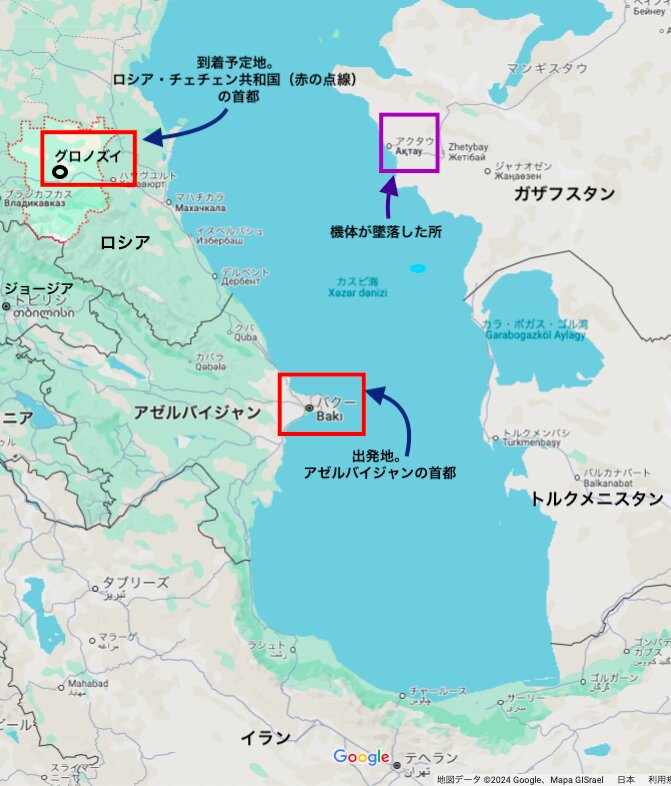 旅客機「撃墜」巡りロシア釈明 死亡機長に責任転嫁12/28(土) 中央アジア・カザフスタン西部で38人が死亡した旅客機墜落について、ロシア航空当局は27日、本来の目的地である同国南部チェチェン共和国の空港周辺が、ウクライナによるドローン攻撃で着陸が「非常に困難」な状況だったと釈明した。通信アプリ「テレグラム」で声明を出した。 声明は、航空会社があるアゼルバイジャン側が訴える「ロシア軍の防空システム誤射」には触れていない。空港周辺は濃霧が立ち込めていた上、墜落したカザフ西部への行き先変更は「機長の判断」と主張しており、責任転嫁を図る姿勢がにじみ出た。機長も副機長も死亡している。 アゼルバイジャンの航空会社は27日、「外部からの影響」が墜落の原因になったという暫定情報を発表した。 「撃墜説」を巡り、ロシアのペスコフ大統領報道官は「調査結果が出る前に仮説を立てるのは間違いだ」とコメントを避けている。不信感を示すように、アゼルバイジャンやイスラエルなどの航空会社はロシア便の運航停止を決めた。 💛ウクライナのミサイルやドローンの届くロシアにおいて民間航空機にとって安全な空域は存在しない、ことの影響は大きいかも?管制官とパイロットの交信の暴露と、なぜカスピ海の対岸で墜落?英雄のパイロット。アゼルバイジャン機事件アゼルバイジャン航空の旅客機が、カザフスタンのアクタウ市付近で墜落。少なくとも38人が死亡した。ロシアの防空システム「パーンツィリS」の地対空ミサイルによるものだとの見方が一般的になっている。機長は、GPS信号を失ったと報告した。彼は出発地点であるバクー(アゼルバジャンの首都)に戻ることを決めた。その時、午前8時16分、機長は鳥との衝突による激しい衝撃を報告した。その直後に、パイロットは機体の操縦困難と油圧システムの損傷を報告した。パイロットは隣接するロシアの2つの空港、ミネラルニエ・ヴォディ空港とマハッチカラ空港への着陸許可を何度も求めた。生存者の一人が、濃霧だったグロズヌイ上空で、飛行機は2度着陸を試みたが、三度目に何かが爆発した、という証言と一致する。その後、J2-8243便は、カスピ海を越えて、隣国カザフスタンに向かっている。パイロットはそこに進むように指示されたと考えるのが、自然である。しかし、対岸にあるアクタウ空港は、450キロも離れている。前述のロシアの2つの空港はもっと近い。ミネラルニエ・ヴォディ空港は240キロ、マハッチカラは140キロだ。アゼルバイジャンの軍事専門家で、ソ連のSu-24大型戦闘爆撃機の元パイロットのアギル・ルスタムザデ氏は、同紙に述べた。「間違っていることを望みますが、大破した飛行機をカスピ海上空に送るという命令は、証拠を隠滅するという緊急性によるものです」機体の操縦に使われていた油圧システムが急速に劣化した中で、パイロットたちは時間との戦いになった。ルスタムザデ氏は、「機体がコントロールを失うのは時間の問題でした。パイロットが人命を救うことができたのは、彼らの英雄的な行為の証しです」もし機体が海に落ちていたら、ブラックボックスの回収も機体の回収も、困難を極めただろう。パイロット二人は、本当に立派だった。悲惨なことに亡くなってしまった。乗務員は5人。機長のイゴール・クシュニャキンさん、副操縦士のアレクサンドル・カリャニノフさん、パーサーのホクマ・アリエワさんの3人は、不時着の際に死亡してしまった。しかし、不幸中の幸いで、他の2人の客室乗務員、ズルフガル・アサドフ氏とエイダン・ラヒムリ氏は生き残り、26日に病院で治療を受けている