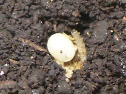 本日、昨日ここに書いたとおりで朝早く(6:30)から仕事でした。よって、早く帰ることができ18:00には自宅の最寄駅についていました。ということでカブクワ弄りに割く時間がいつもより多くできましたので4/20にセット終了したムニスD♀のセット解体です。前回のセットは、放置による悲しい結果でしたので早めの解体です。結果・・・・23個!内、腐り卵1、白い卵22個です。結構産んでくれましたね!また白い卵のうち、ニョロ透けの卵も1個ありました♪ちょっと写真だと判り辛いですね。他にも期待できそうな卵が数個ありました。そのうちの1個です。少なくとも2~3頭は孵化して欲しいなぁ~
