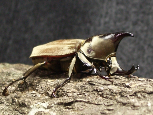 本日、成虫のゼリー交換を行ったのですが、コーカサス♀のケースをあけたとたんに中にいた♀が羽を広げて飛び立ちました。飼育部屋の中を飛び回って大変でした昨日まで寝ていたのですが、本日から活動を始めたみたいでケースの中で暴れまわっていましたが、ゼリーをあげたとたんに大人しくなりました。ちなみにコーカサス♂の蛹はまだ蛹のままですGW中に増種ということでミツノ2種類(ロンギ、アロエウスssp)のニョロを購入したことを紹介しましたが、実は、GW明けに密かに追加購入していました。ロンギの成虫ペアです!かなりカワイイサイズの♂ですが、どうしてもブリしたくなって購入しちゃいました。オクで購入したのですが、とても信頼できる方からの購入で満足の取引でした♪♂のみ写真で紹介します。カワイイですね。もう1枚。♂♀とも5/12から後食を開始しています。どれくらいでブリ開始していいのかわかりませんが、もう少ししたらペアリングを行おうと思っています。