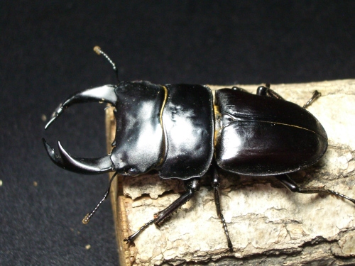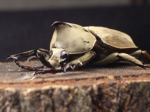 まずは言い訳から。昨晩(5/2の夜)23:30頃、日記を書こうと思いPCを立ち上げて楽天にログオンしたと同時くらいに、会社携帯が鳴り響きましたトラブル発生です。2台の携帯電話で各方面に電話やメールで状況の確認や対応方法の相談をして結局対応方法が決まったのは、02:00少し前...orz。日記書かずに寝てしまいました。ということで、5/2(金)の日記です。本日、誕生日からちょうど1ヶ月目です。誕生日の件をここに書きましたが、それを見ていた方からちょうど1ヶ月遅れの誕生日プレゼントを頂きました♪いただいたお方は、私の師匠こと横浜のKENさんです!ありがとうございますm(_ _)mプレゼントをいただけることは前に連絡をうけてわかっていましたが、その時点ではタイミングが悪かったので受取の日にちが決まっていませんでした。4/30(水)の師匠からの電話は、準備完了の電話でした。5/2(金)はもともと有給取得予定だったのとKENさんはすでにGWで休みだったこともあり都合がつき、横浜までプレゼントの受取に行ってきました。KENさんのブリードルームに入るのは3回目です。とても綺麗で、コバエ0(ゼロ)の環境を築き上げています。うらやましい。以前、訪れたときはヘラヘラが結構な数いましたが、KENさんもオオカブトは縮小らしく羽化したての成虫が数頭いたのみでした。(高額なヘラクレスの亜種のニョロはいましたけど<=いいなぁ)モロンの成虫も見せていただきましたがカッコよかったです。ブリードルームで一番場所をとっていたのが、やっぱりムニスやモンゾーニのニョロから新成虫までの各ステージのものです。オークションやショップでは、ほとんど見かけることのできないバックレイコフキのWF1の新成虫も数頭いました。残念ながら、1頭の♀を除いて羽化後の休眠中で蛹室の中にいるため全体像をみることはできませんでしたが、Pカップ越しに見せていただきました。バックレイも数頭はオクに出品予定のことで、楽しみです!さて、本日いただいたプレゼントですが、こいつです。モンゾーニコフキです!別血統の♂♀を頂いちゃいました!カッコいいので、同じ♂の写真をもう1枚。実物は初めてみましたが、カッコいいです!ムニスに比べて胸角が短いので迫力にかけるかと思っていましたが、全然そんなことはなく、イイです!1ペアのみではブリードに心配なので、もう1ペアの購入をお願いしたところ...な・ん・と・、もう1ペアいただけることになっちゃいました。本当にありがとうございます!涙が出そうなくらい嬉しいです。結局2ペアのモンゾーニを頂いちゃいました。実は、それだけではないです。オオカブ縮小のため、大量にプラケースがあまっているとのことで、洗浄済みの中古プラケース(中)を10個以上とヘラヘラの人工蛹室に使っていたQBox-20も10個弱いただいちゃいました!ありがとうございます。これで暫くの間プラケース買わずに済みます。大量のプレゼントをいただき、大満足の1日でした。KENさんありがとうございました!