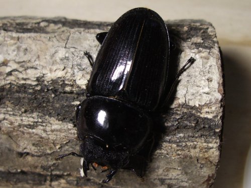 いつもご覧頂いているかたならご存知だとは思いますが、今月(4月)の月初に仕事上のトラブルで、ほぼ3徹しました。今日は2ヶ月連続でのトラブルを防止するため泊り込みで仕事ですと、日記書いている途中で師匠(私が勝手に思っている)から電話が...仕事で徹夜を前にしているツライ状態だったのですが、一気に気分転換です。楽しい一時を過ごさせていただきました。ありがとうございますm(_ _)mさて、本日のカブクワ弄りです。徹夜が決まっており午前中は休みでしたのでそこで少し弄りました。ラベルのはがれてしまった菌糸ビンがあったのですが、1ヶ月ほど前に羽化を確認していました。オオクワとコクワの入っている棚の菌糸ビンなので、どちらかに間違いはありません。大きさ的には、コクワの♂かオオクワの♀といったところです。ということで、掘出してみました。オオクワの♀でした!素早く動き回るので写真を撮るのに苦労しました。サイズは、46mmです。800ccの菌糸ビン1本での羽化だからしょうがないですね。今年は、オオクワのブリの予定はございません(ブリ可能な成虫がいない)。今年、じっくり餌を食べさせて越冬させ、来年のブリに備えます。