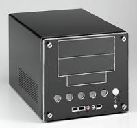 200W電源を搭載する、ミニITXケース。5インチと3.5インチベイ、拡張スロットルを各2基備えている。株式会社ディラックhttp://www.dirac.co.jp/square%20one.html