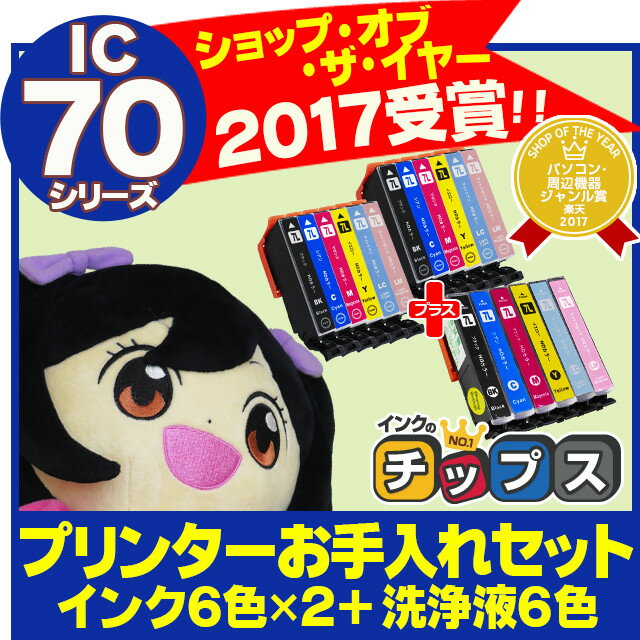 IC6CL70L EP社 互換クリーニングカートリッジ 6色×1セット+互換インクカートリッジ6色×2セット【全18本】IC70Lシリーズ【洗浄液+インクのセット】【宅配便商品・あす楽】