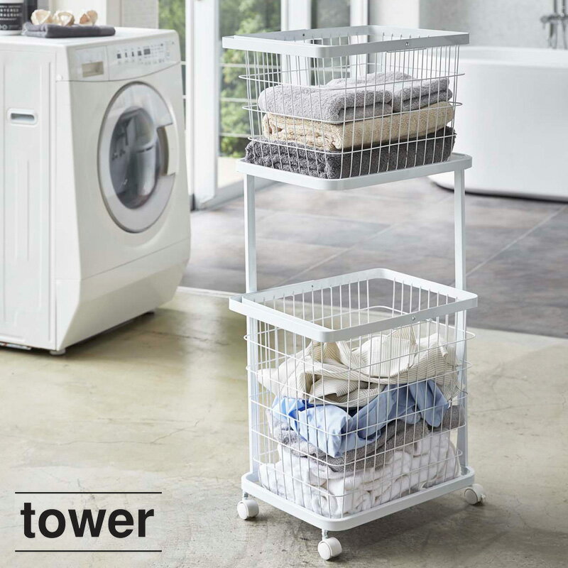 【あす楽】 ランドリーバスケット & ランドリーワゴン 3点セット tower 送料無料ランドリーラック ランドリーボックス ワイヤーバスケット 洗濯かご 洗濯物入れ ワゴン 2段 キャスター スリム スチール ホワイト 白 ブラック タワー 山崎実業 yamazaki ordy< /a>