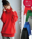 セーター ニット レディース ゆったりワンサイズ 綿100% 洗えるタートルネック グリーン/ロイヤルブルー/黒/赤/杢グレー S~LL ニッセン