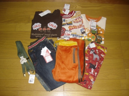 楽天で久しぶりに日記を書き始めました。前は今3才の息子を妊娠中から生まれて1才ぐらいまで(2001~2002年ぐらいですねぇ)続けていたのでほんと久しぶりになります。その頃お世話になっていた方々現在も続けていらっしゃる方もいますし、HPがなくなってしまっている方もいますが・・・またよろしくお願いします。(今回はいつまで続くでしょうか・・・・頑張ってみます。)さっそくですが昨日購入したナカムラ赤ちゃん店さんのFO福袋110サイズ購入です。総額10920円でした。★税込★2006年春物ラッキーパック★FOインターナショナル激戦の中購入できてラッキー昨日買ったばかりなのにもう届きましたはじめてのネタバレしてみます。画像とかうまくできるかまだまだ心配ですが・・・初心者ですのでその辺は多めにみてくださいね6枚もはいっていました~!!ボトムが多くて大感激ですトップス2枚110を買ったのですが100の息子にはちっちゃめか??ボトムス4枚全部総ゴムはきやすそうです。4月から保育園に行く息子には総ゴムがほしかったので嬉しいです。トップスの後ろ、水色の長Tかわいいです~FOはじめて購入しましたが開いた時のインクのにおいがきつかったです。ちょっとかたそうかな~という感じもあったのですがお洗濯したらにおいも消えて生地もやわらかくなりました。他の方のレビューを見てちょっと小さめかなと思って110を購入したのですがトップスは今ちょうど良さそうです。春物なのですぐに着れるのでまあよしですね昨日アウトレットでボトムスとか定価で売っていました。(なぜアウトレットなので定価なの???とか思いました・・当然買いませんでしたが。FOってもともと定価が安めですよね?)保育園用にがんがん着せられそうです。個人的にはティンカーベルやKP、KLCが好きな私ですが保育園に着せていくのはちょっと抵抗があってどうしようと思っていたので、お洋服いっぱい購入できてよかったです!!