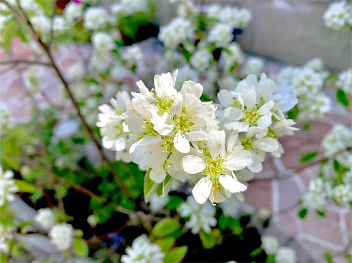 ジューンベリーの花が咲いたの。こちら。ジューンベリー(リージェント)小さい木ながら満開だね!今年もたくさん咲いたね!足元のムスカリも咲いたね。この季節を楽しみましょう!今回のキーアイテム★「ジューンベリー」にほんブログ村