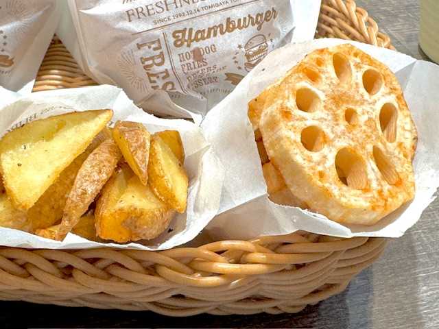 セットをつけて、フライドポテト、レンコン