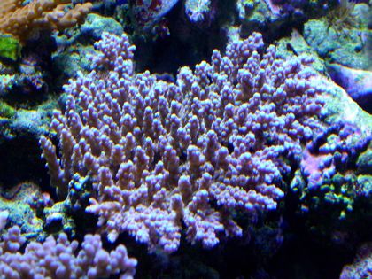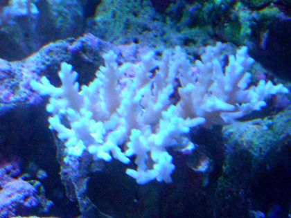 私がお気に入りに登録させていただいているところでも、していないけどよく拝見するところでもいろいろ生体が沸いていますね。かく言う私も、家族旅行の2日目にサンゴ1つ購入してますが^^ヾが、実は次の日に得意の買い物ついでにスプラッシュに行ってきまして、サンゴ買っちゃいましたちょうど入荷直後だったみたいで、久しぶりに満タンの水槽を見ました。しかもそのとき多分問屋から社長宛にがあり、「入りきらない」と入荷ストップの会話までしてました。で、いい個体がわんさかあり、すんごく迷いました(もちろん懐とも相談しました)^^ヾしかし誘惑と自分に甘いところがモロに出てしまい、購入に至ったわけです。そんな思いで購入した個体が社長いわくキクハナガサかなんとかだか(忘れちゃいました^^;)どちらかだと思うとのこと。まぁ別にこの個体が気に入ったのでどちらでも良いのですが・・・さらに1本枝が折れていたので、1000円割引までしていただいちゃいました(^^)vこれでまたココスへの道のりが遠のいた~(>o<)まっ気に入ってるのでそれでも良いんですが