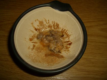 現在進行中のシマヤッコ餌付け作戦。とうとう秘密兵器を投入することに決定しました。秘密兵器とは・・・あ・さ・りできれば水が汚れるので使いたくなかったのですが、☆になるよりはマシと判断しました。では、早速調理開始。とその前に換水用のRO水を作らないとさあ、改めて調理開始。まずクリルとシュアをすり鉢で擂って粉にしておきます。次にアサリを剥きます。とりあえず5個ほど剥きました。で、すり鉢へ。ここで最初に擂っておきたクリル粉とスリスリ、マゼマゼ。このとき、凄く生臭い<写真取り忘れ>^^ヾミンチ状になったらアサリの殻へ塗り付けて完成。で、4つはラップをして冷凍庫へ。残り1つを早速隔離箱に入れました。ちょっと経ったら食べた~その後も様子を見ながら、ちょこちょこ突付いてます。取り合えず食っているという安心を少し手に入れましたしばらく(あと4日)はこれで様子見ることにします