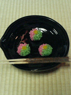 茶道の世界にもこっそりとクリスマスがやってきます。このお菓子の名前は 『聖夜』 キキララみたいなポップな色合いと☆がちょこんと乗っていてとっても可愛らしいお菓子クリスマスの夜素敵な出来事が私に大切な人達にそして皆さんに訪れますようにと願いながらおいしくいただきました。