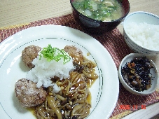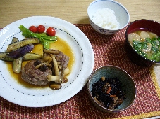 マラソンのあとはやっぱり疲れからか、ものすごく食べたいものが出て来たりします。今日はハンバーグでした。リンクのmebhiさんの影響は絶大で前はハンバーグのソース、結構手抜きでした。ハンバーグを作ると80%の割で、マスタード、ケチャップ、赤ワインのものでした。今日は行ったスーパーにいい感じのヒラタケがあったので茸ソースにしてみました。メニュー茸ソースのハンバーグ 絹さやとトマトのバター炒め、茄子のオリーブオイル焼きヒジキの煮物麩と春菊の味噌汁1、牛豚合びき 2、玉ねぎ 3、パン粉 4、卵 5、牛乳 6、絹さや 7、プチトマト 8、茄子 9、ヒジキ 12、ニンジン 13、油揚げ 14、筍 15、ふ 16、春菊 17、味噌 18、バター 19、オリーブオイル 20、ご飯