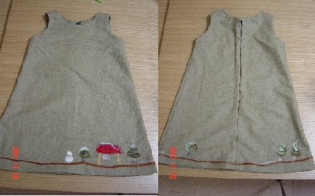 本当に今日3回目書いちゃいました。久々(?)の子供服です。お友達のanrakutenさんのこのページを見ていつかこんなの作りたいなぁと思ってたのですが、わりと思ったように出来たので、3回目にもかかわらずアップしちゃいました。羊毛を使ってウールの布地にアップリケして作りました。模様の部分はこんな感じ、白の羊毛がほんとに雪っぽく見えません??これを使って作りました。