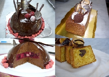 明日の確認もかねて、少し思うところがあったので、カシスムースを作りました。作ってる間にいろいろ思いついて、マトファーのシリコン型に流し、冷凍してとっておいたハギレのチョコジェノワーズを使い、グラサージュショコラをかけて見ました。シリコンの型が薄いものなのでカシスのムースしか流せなかったけど、もっと厚い型でチョコのムースか生クリームで二層にしたらもっと面白そう。チョコジェノワーズはハギレを寄せ集めてくっつけたので、奥の断面の写真が汚いのはお見逃しを・・・。そしてクグロフ、大きい型と小さい型二個で焼きました。小さい方は少しつなぎ目のところが甘く斜めに焼きあがってしまいました。今日のフルーツは、巨峰レーズン、杏、クランベリー、干し林檎です。
