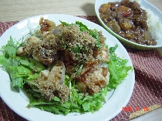 今日は冷蔵庫を探索したらほとんど残りの汁だけのキムチととり胸肉が出てきました。(すごい冷蔵庫??)汁で漬け込んで唐揚げにしたらおいしそう!!やってみたらGOODでした。生の時には強すぎる匂いも熱を加えたら良い感じで飛んでて。今日はほんとに残り汁だけで漬けましたが、心持薄味だったので、ちょっとだけ醤油か塩をたしてもいいかなと思いました。そしてもう一品昼に開けた缶詰めのアンチョビ身の崩れた所と漬けてあったオイルで思いついて、かぼちゃとしめじを刻みニンニクを入れた漬けてあったオイルで焼いた所にチキンス-プをくわえて少しほっこりさせました。アンチョビとチキンスープの塩味だけで十分いけました。普段なら捨てちゃうかもしれない物を使いきるとうれしい!!メニューキムチ唐揚げアンチョビパンプキン (画像暗くておいしそうに見えませんがおいしかった)ほうれん草の胡麻味噌がけキュウリとワカメの酢物蕪丸ごと味噌汁五穀ご飯1、とり胸 2、片栗粉 3、アンチョビ 4、かぼちゃ 5、しめじ 6、ニンニク 7、ほうれん草 8、胡麻 9、味噌 10、キュウリ 11、ワカメ 12、プチトマト 13、蕪 14~18、五穀