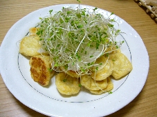このブログで話題にすること4,5回目でしょうか。「フライパンでこんがり軽く焼いて大根おろしとポン酢でいただくあられ揚げ」本日のつまみに登場です。男前豆腐のメーカーぽいけど違うかも、HPにも出てないしと思ってましたがやっぱり男前豆腐のメーカーさんでした。いつも使ってる安物の油揚げより少しこくを感じます。名前にある通りにしたり、味噌汁に入れたり・・・。今日は大根おろしの上にさらにブロッコリースプラウトをのせてつまみにしました。簡単でおいしい一品は主婦の味方ですよね。